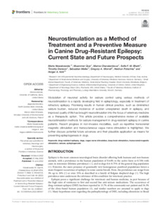 Modulation of neuronal activity for seizure control using various methods of neurostimulation is a rapidly developing field in epileptology, especially in treatment of refractory epilepsy. Promising results in human clinical practice, such as diminished seizure burden, reduced incidence of sudden unexplained death in epilepsy, and improved quality of life has brought neurostimulation into the focus of veterinary medicine as a therapeutic option. This article provides a comprehensive review of available neurostimulation methods for seizure management in drug-resistant epilepsy in canine patients. Recent progress in non-invasive modalities, such as repetitive transcranial magnetic stimulation and transcutaneous vagus nerve stimulation is highlighted. We further discuss potential future advances and their plausible application as means for preventing epileptogenesis in dogs.