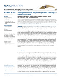 Viscosity measurements of crystallizing andesite from T ungurahua volcano (E cuador).