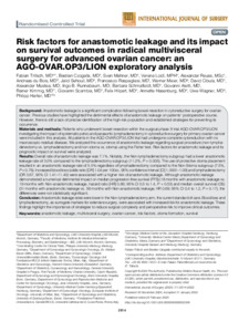 Risk factors for anastomotic leakage and its impact on survival outcomes in radical multivisceral surgery for advanced ovarian cancer: an AGO-OVAR.OP3/LION exploratory analysis.