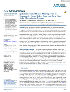 Spatial and Temporal Scales of Riming Events in Nonconvective Clouds Derived From Long‐Term Cloud Radar Observations in Germany.