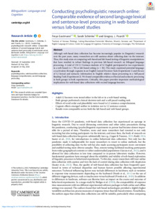 Conducting psycholinguistic research online: Comparable evidence of second language lexical and sentence-level processing in web-based versus lab-based studies.