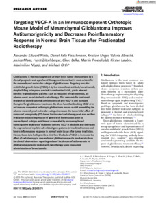 Targeting VEGF‐A in an Immunocompetent Orthotopic Mouse Model of Mesenchymal Glioblastoma Improves Antitumorigenicity and Decreases Proinflammatory Response in Normal Brain Tissue after Fractionated Radiotherapy.