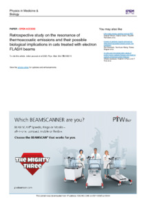 Retrospective study on the resonance of thermoacoustic emissions and their possible biological implications in cats treated with electron FLASH beams.