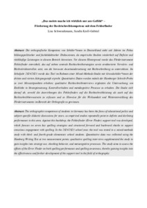 Die orthografische Kompetenz von Schüler*innen in Deutschland steht seit Jahren im Fokus bildungspolitischer und fachdidaktischer Diskussionen, da empirische Studien wiederholt auf Defizite und rückläufige Leistungen in diesem Bereich hinweisen. Vor diesem Hintergrund wurde das Förderinstrument Fehlerfinder entwickelt, das auf sieben zentrale Rechtschreibstrategien sowie strukturierte Vorwärts- und Rückwärtskontrollen setzt, um die bewusste Auseinandersetzung mit Rechtschreibung zu unterstützen. Im Schuljahr 2024/2025 wurde das Tool im Rahmen einer Mixed-Methods-Studie mit Grundschüler*innen der dritten und vierten Jahrgangsstufe erprobt. Quantitative Daten wurden mittels der Hamburger Schreib-Probe zu zwei Messzeitpunkten erhoben; qualitative Rechtschreibinterviews ergänzten die Untersuchung, um Einblicke in Strategienutzung, Kontrollverhalten und metakognitive Prozesse zu erhalten. Die Studie zielt darauf ab, sowohl die Auswirkungen des Fehlerfinders auf die Rechtschreibleistung als auch auf das Rechtschreibbewusstsein zu erfassen und so Hinweise für die Wirksamkeit und Weiterentwicklung des Förderinstruments im Bereich der Orthografie zu gewinnen.