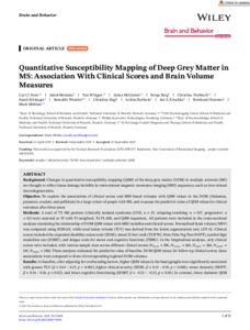Quantitative Susceptibility Mapping of Deep Grey Matter in MS: Association With Clinical Scores and Brain Volume Measures.