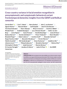 Cross‐country variance in facial emotion recognition in presymptomatic and symptomatic behavioral variant frontotemporal dementia: Insights from the GENFI and ReDLat consortia.