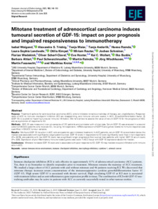 Mitotane treatment of adrenocortical carcinoma induces tumoural secretion of GDF-15: impact on poor prognosis and impaired responsiveness to immunotherapy.