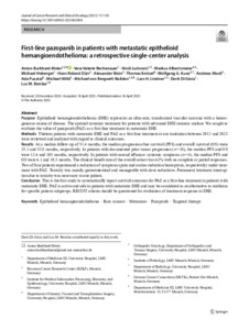 Conclusion: This is the first study to systematically report survival outcomes for PAZ as a first-line treatment in patients with metastatic EHE. PAZ is active and safe in patients with metastatic EHE and may be considered as an alternative to sirolimus for specific patient subgroups. RECIST criteria should be questioned for evaluation of treatment response in EHE.