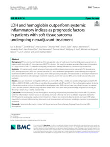 LDH and hemoglobin outperform systemic inflammatory indices as prognostic factors in patients with soft tissue sarcoma undergoing neoadjuvant treatment.