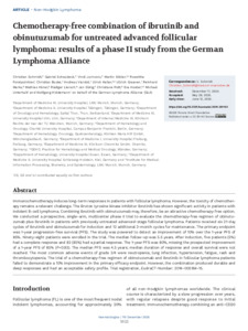 Chemotherapy-free combination of ibrutinib and obinutuzumab for untreated advanced follicular lymphoma: results of a phase II study from the German Lymphoma Alliance.