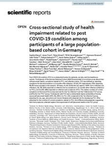 Cross-sectional study of health impairment related to post COVID-19 condition among participants of a large population-based cohort in Germany.