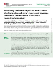 Estimating the health impact of menu calorie labelling policy and sugar-sweetened beverage taxation in two European countries: a microsimulation study.