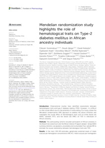 | Keywords: | Africa; Hematological traits; Type-2 diabetes; blood cell traits; mendelian randomization |