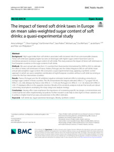 The impact of tiered soft drink taxes in Europe on mean sales-weighted sugar content of soft drinks: a quasi-experimental study.