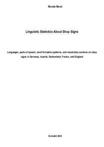 | Bemerkung: | Veröffentlichte Dissertation: Linguistische Analyse von Geschäftsschildern: eine Untersuchung in Deutschland, Österreich, der deutschsprachigen Schweiz, Frankreich und England DOI: 10.5282/edoc.32689 |