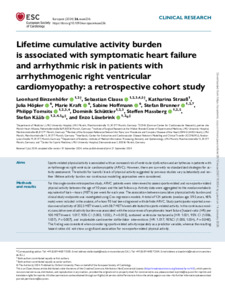 Lifetime cumulative activity burden is associated with symptomatic heart failure and arrhythmic risk in patients with arrhythmogenic right ventricular cardiomyopathy: a retrospective cohort study.