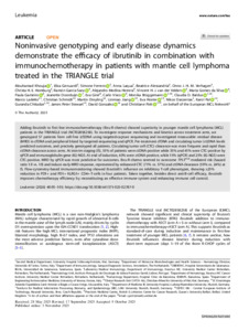 Noninvasive genotyping and early disease dynamics demonstrate the efficacy of ibrutinib in combination with immunochemotherapy in patients with mantle cell lymphoma treated in the TRIANGLE trial.