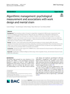 Algorithmic management: psychological measurement and associations with work design and mental strain.