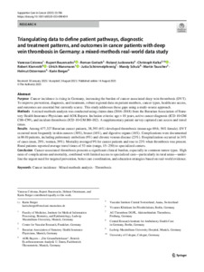 Triangulating data to define patient pathways, diagnostic and treatment patterns, and outcomes in cancer patients with deep vein thrombosis in Germany: a mixed-methods real-world data study.
