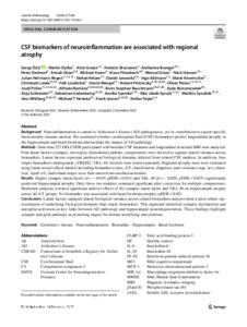 CSF biomarkers of neuroinflammation are associated with regional atrophy.
