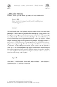 This paper unfolds parts of the dynamic, yet mostly hidden, history of MS Sinai Arabic 151 based on its paleographical, codicological, paratextual, and textual features. Combining these aspects opens new horizons of research in the Arabic Bible manuscripts that had previously received attention limited solely to the text. MS Sinai, Ar. 151 is an intact manuscript containing the Pauline Epistles, Acts of the Apostles, and the Catholic Epistles. Its fame derives mainly from its colophon, which dates it to 867 CE, and bestows it with the distinction of belonging to the earliest Arabic Bibles. In observing the various stages through which the manuscript evolved from two separate units of production into the codex preserved today, several aspects of the life of MS Sinai, Ar. 151, such as the copies made from it, its damage and restoration, and the functions it served, become clearer. Furthermore, for different reasons, scholars have cast shadows on its colophon’s authenticity. Our investigation clarifies that there is no reason to suspect the authenticity of the colophon.