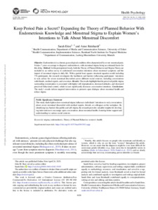 Keep period pain a secret? Expanding the theory of planned behavior with endometriosis knowledge and menstrual stigma to explain women's intentions to talk about menstrual discomfort.