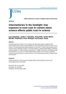 Intermediaries in the limelight: how exposure to trust cues in content about science affects public trust in science.