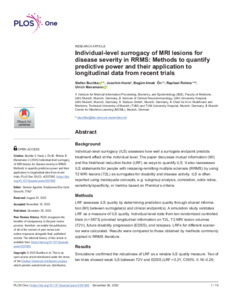 Individual-level surrogacy of MRI lesions for disease severity in RRMS: Methods to quantify predictive power and their application to longitudinal data from recent trials.