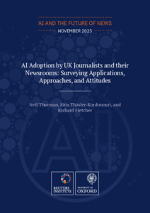 AI adoption by UK journalists and their newsrooms: surveying applications, approaches, and attitudes.