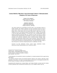 Cultural Motifs of Big Data in User-Generated Content: A Semiautomated Analysis of 10 Years of Discourse.
