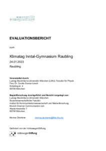 Der vorliegende Bericht präsentiert die Evaluationsergebnisse einer Wissenschaftskommu-nikationsmaßnahme, die im Januar 2023 im Rahmen eines Klimatags am Inntal-Gymnasium Raubling stattfand. Ziel der Veranstaltung war es, Lehrkräfte fächerübergreifend über den menschengemachten Klimawandel zu informieren, sie zu befähigen, das Thema in ihren Un-terricht zu integrieren, sowie konkrete Maßnahmen zur CO2-Reduktion an der Schule zu pla-nen und umzusetzen. Ein naturwissenschaftlich fundierter Fachvortrag leitete die Veranstal-tung ein, gefolgt von Gruppenarbeiten, in denen die Lehrkräfte Ideen zur Integration des The-mas in den Lehrplänen entwickelten. Die Evaluation des Klimatags basiert auf einer umfang-reichen Datenerhebung, die sich aus einer Vorbefragung (N = 71) und drei Nachbefragungen (N1 = 61; N2 = 32; N3 =20) zusammensetzt. Daraus konnten 10 vollständige Datensätze von Lehrkräften erstellt werden, die an der Vorbefragung sowie allen drei Nachbefragungen teil-genommen haben. Die Ergebnisse der Evaluation zeigten ein gesteigertes Interesse der Lehrkräfte am Thema, jedoch blieb die Selbstwirksamkeit bezüglich der Veränderung von Verhalten und klimaschützenden Maßnahmen eher mäßig ausgeprägt. Die Umsetzung der Ideen des Klimatags blieb größtenteils aus, möglicherweise aufgrund fehlender konkreter Handlungsempfehlungen der Expert*innen. Die Bewertung des Klimatags durch die Teilneh-menden war teilweise positiv, obwohl einige Lehrkräfte die Umsetzbarkeit der erarbeiteten Konzepte kritisierten. Insgesamt leistete der Klimatag einen wichtigen Beitrag zur Bewusst-seinsbildung und Diskussion über den Klimawandel an der Schule, aber es besteht weiterhin Bedarf an gezielten Maßnahmen zur Umsetzung klimaschützender Verhaltensänderungen auf individueller und institutioneller Ebene.