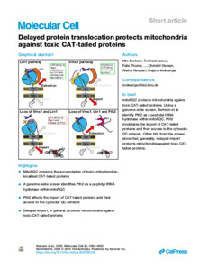 Delayed protein translocation protects mitochondria against toxic CAT-tailed proteins.